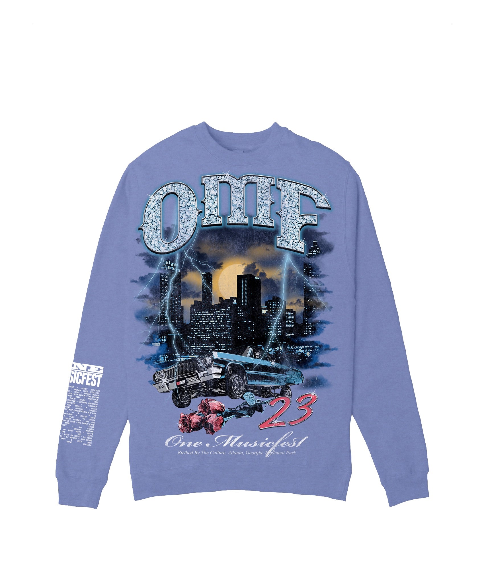 OMF 23 ATL Skyline Bling Pigment Blue Crewneck