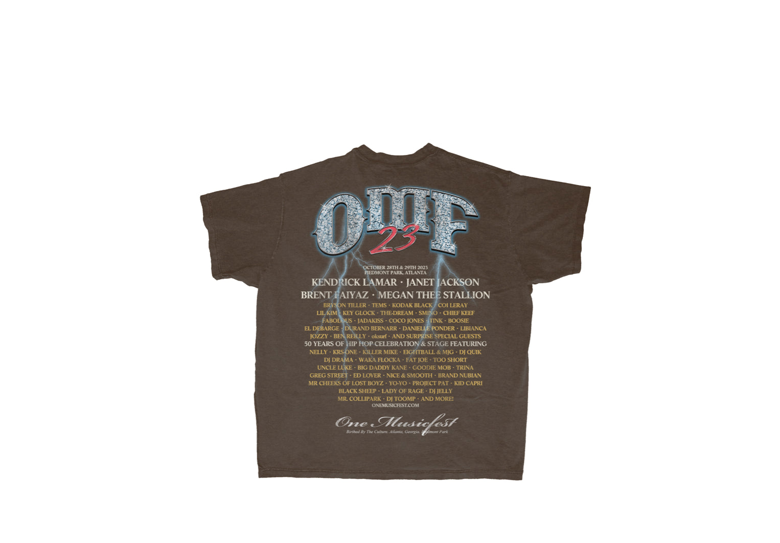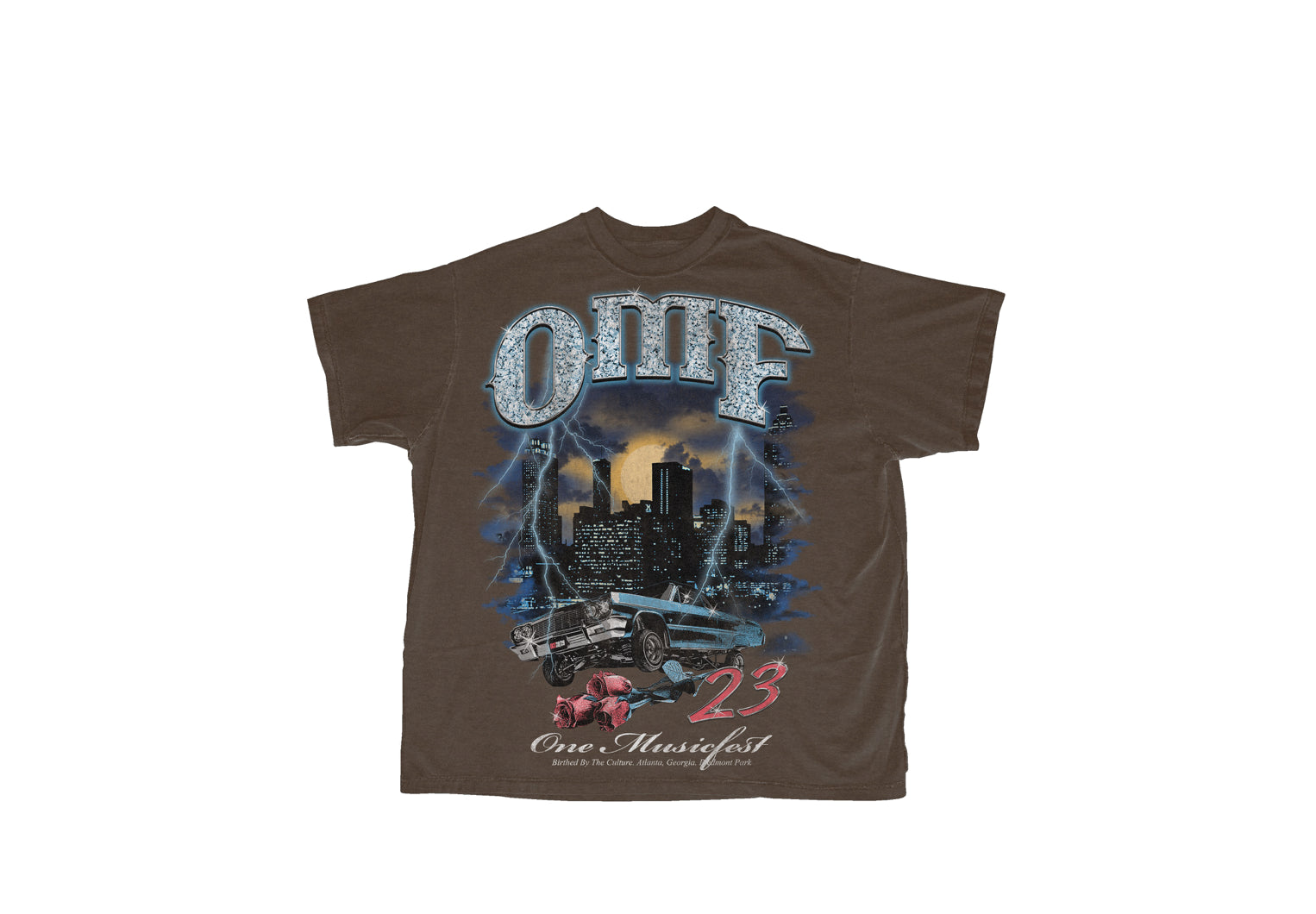 OMF 23 ATL Skyline Bling Dark Brown Lineup Tee